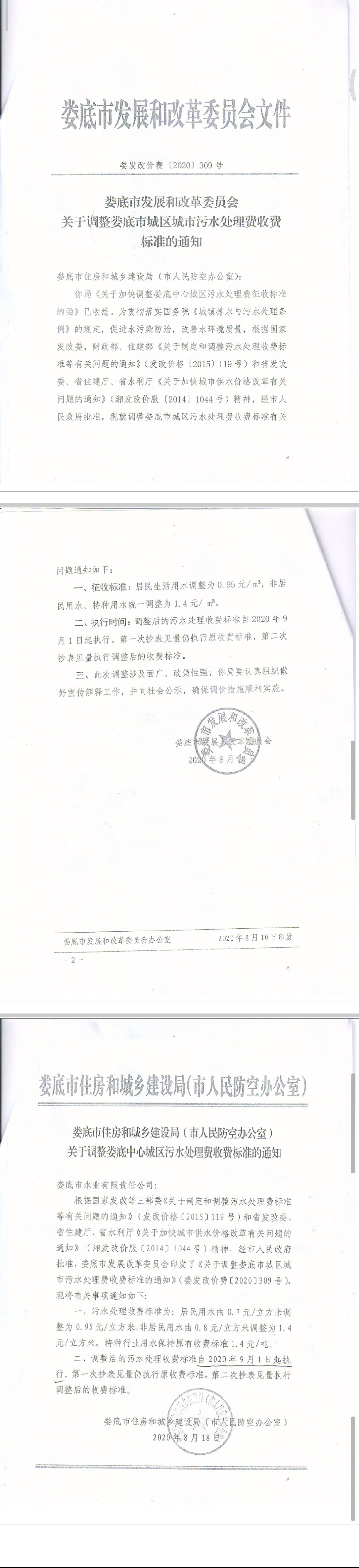 關于調整婁底市城區(qū)城市污水處理費收費標準的通知